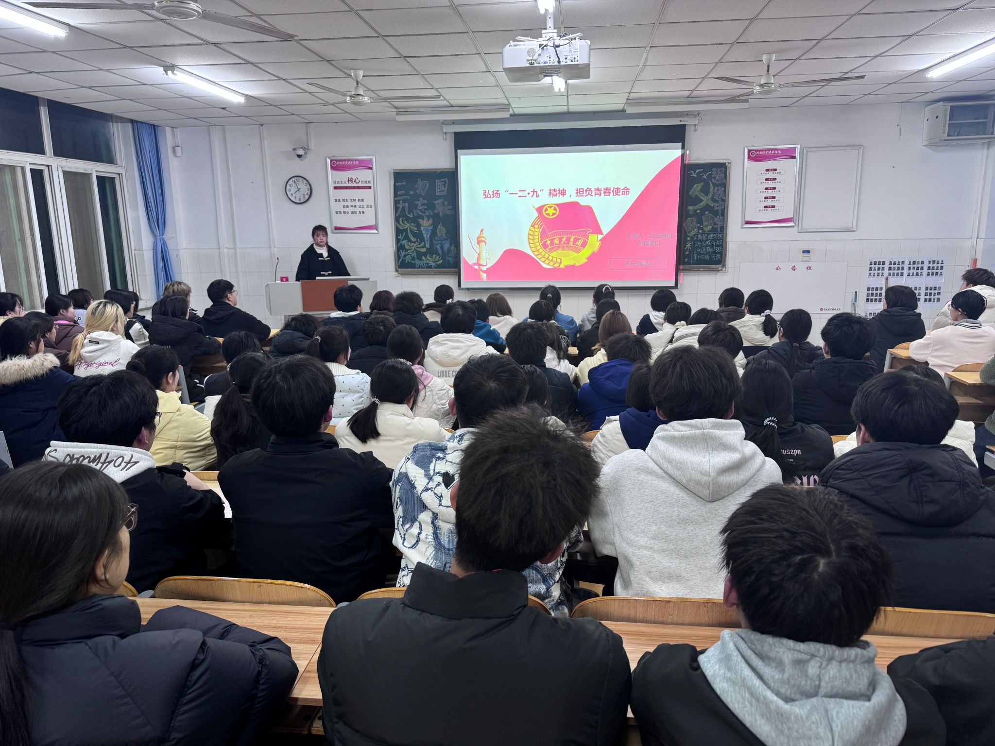 团课伊始,团支书通过生动的讲解和丰富的历史资料,向同学们详细介绍了“一二·九”爱国运动的背景、经过和意义,并强调“一二·九”精神是中华民族精神的重要组成部分,是青年一代应当继承和发扬的宝贵财富。接着,团课进入互动环节,团支书组织同学们就“如何在新时代弘扬‘一二·九’精神、担负青春使命”的话题展开了热烈讨论。大家纷纷表示,要继承和发扬“一二·九”精神,努力学习专业知识,提升综合素质,积极投身社会实践,做有担当的新时代青年。最后,团支书对本次团课作出总结,鼓励同学们要继续发扬优良传统,争做新时代的先锋和楷模,同时号召同学们在今后的学习和生活中,积极投身社会实践和志愿服务活动,用实际行动践行“一二·九”精神,为中华民族伟大复兴贡献自己的青春力量。