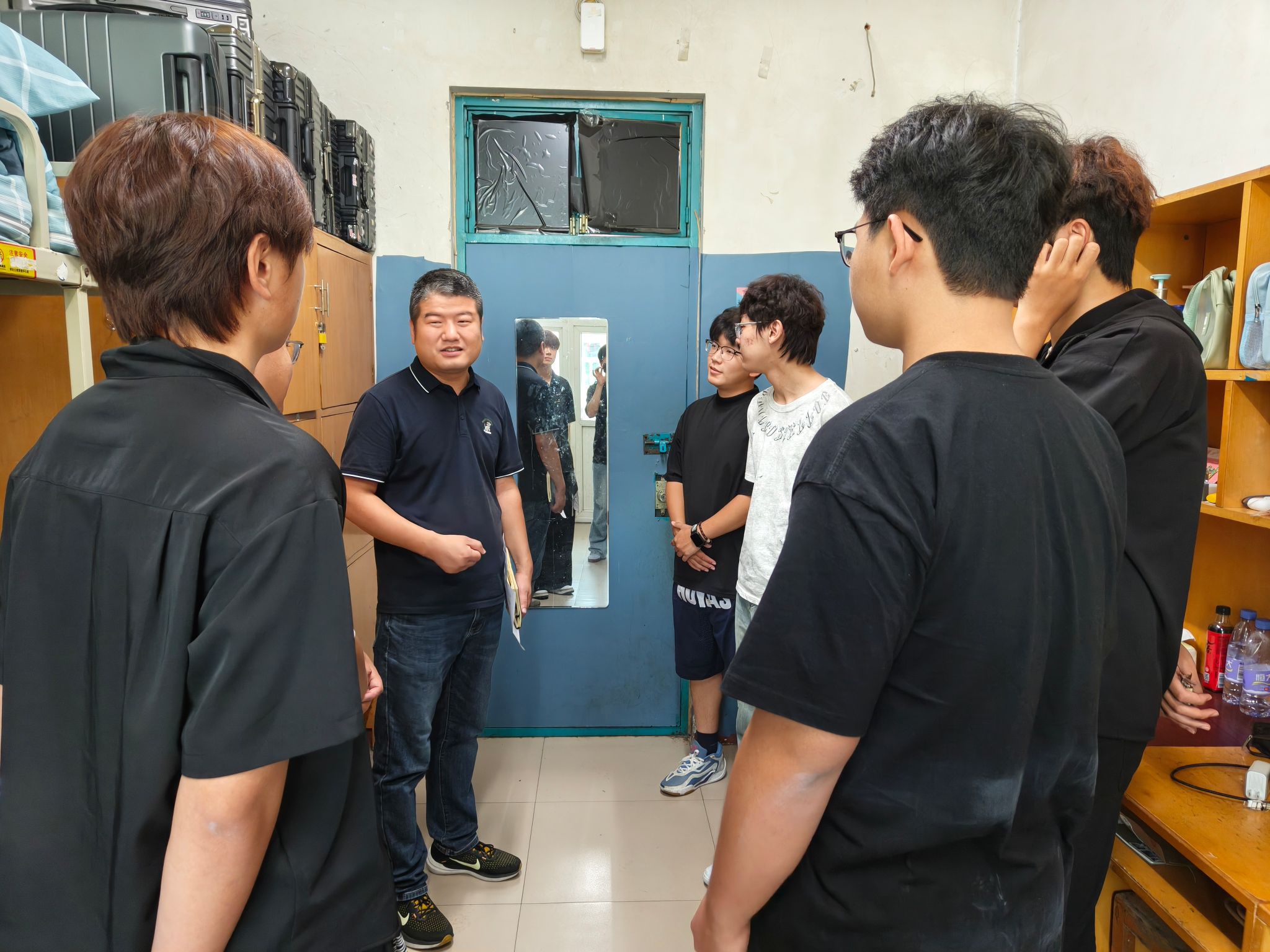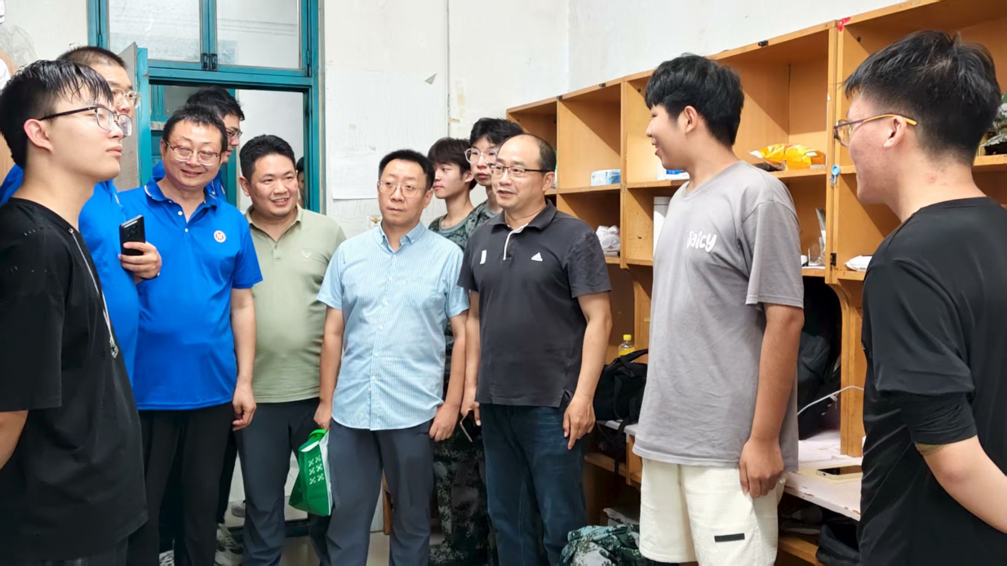 走访过程中,领导与老师们细致查看宿舍设施与环境卫生,耐心询问同学们的生活细节。“家乡是哪里?”“住宿和饮食还习惯吗?”“有没有遇到什么困难?” 一句句亲切的问候瞬间拉近了师生之间的距离。领导们仔细查看住宿环境,关切询问新生的报到流程是否顺利、行李是否安置妥当、生活需求是否得到满足。院领导勉励新生要尽快转变角色,珍惜时光,夯实专业基础,实现全面发展。 这份关怀让新生们倍感温暖与鼓舞,大家纷纷表示将勤奋学习,不负期望。“宿舍是大学的‘第一个家’,要学会与室友和睦相处、互帮互助,遇到困难及时向辅导员和班主任老师沟通。 学院永远是大家坚实的后盾。”学院党委书记王国辉的叮嘱让新生们感受到了家的温暖。