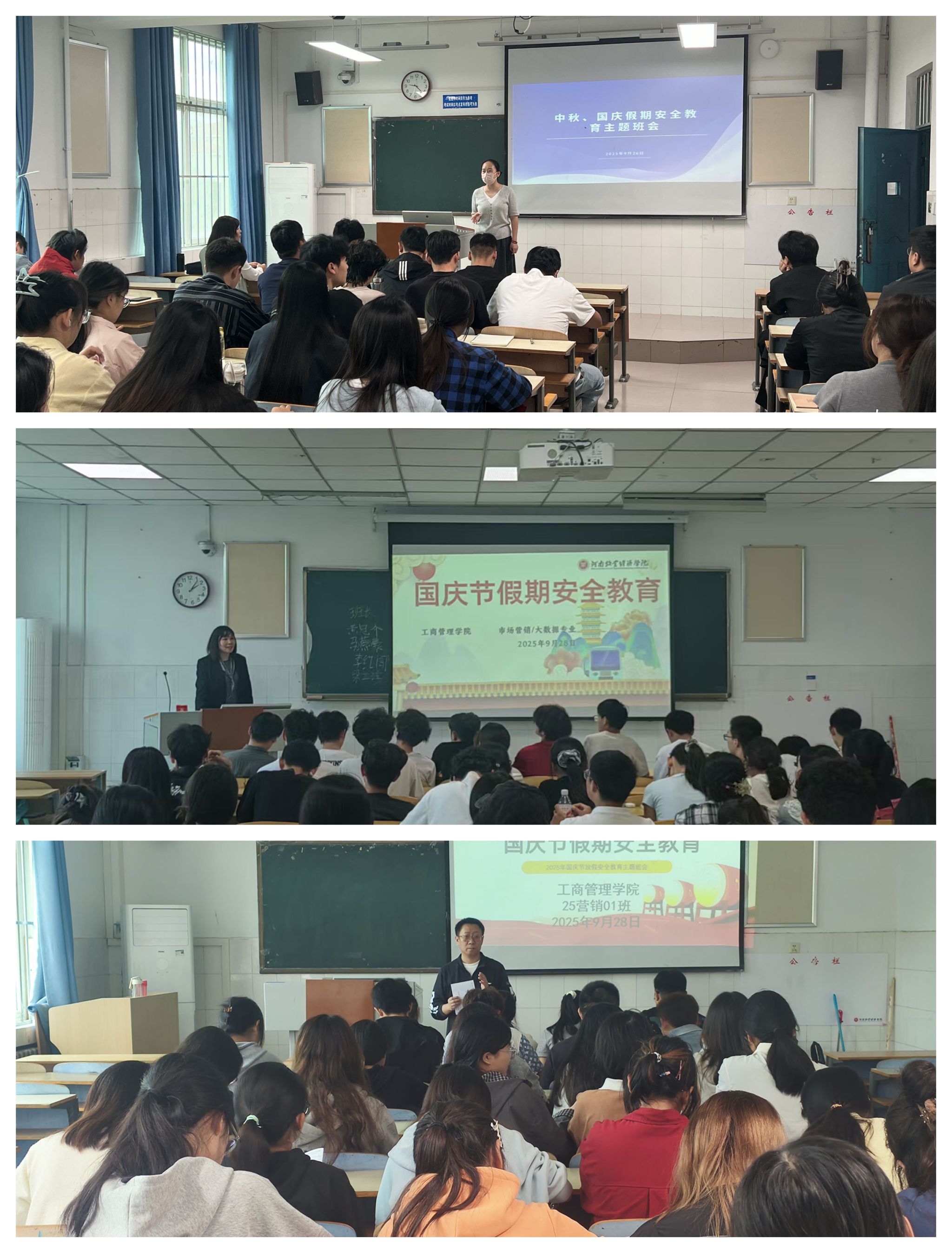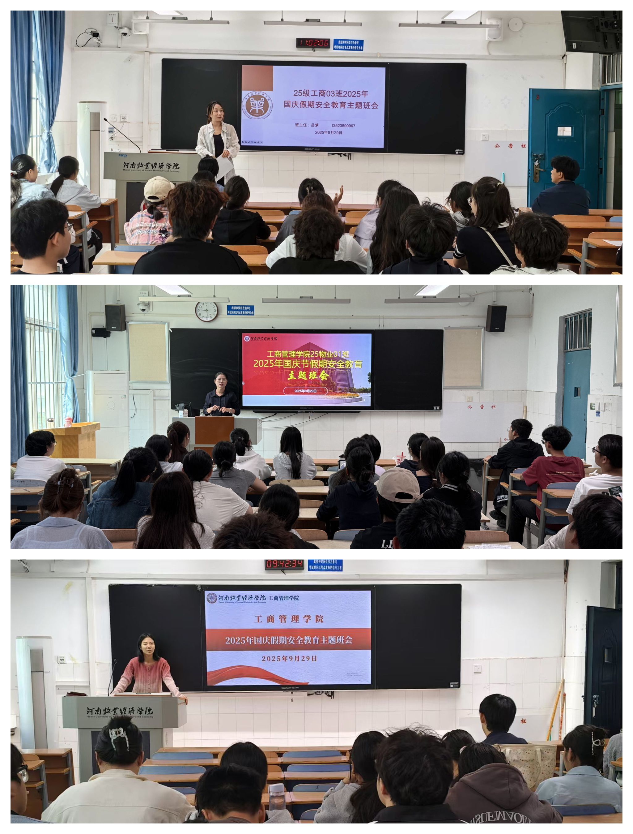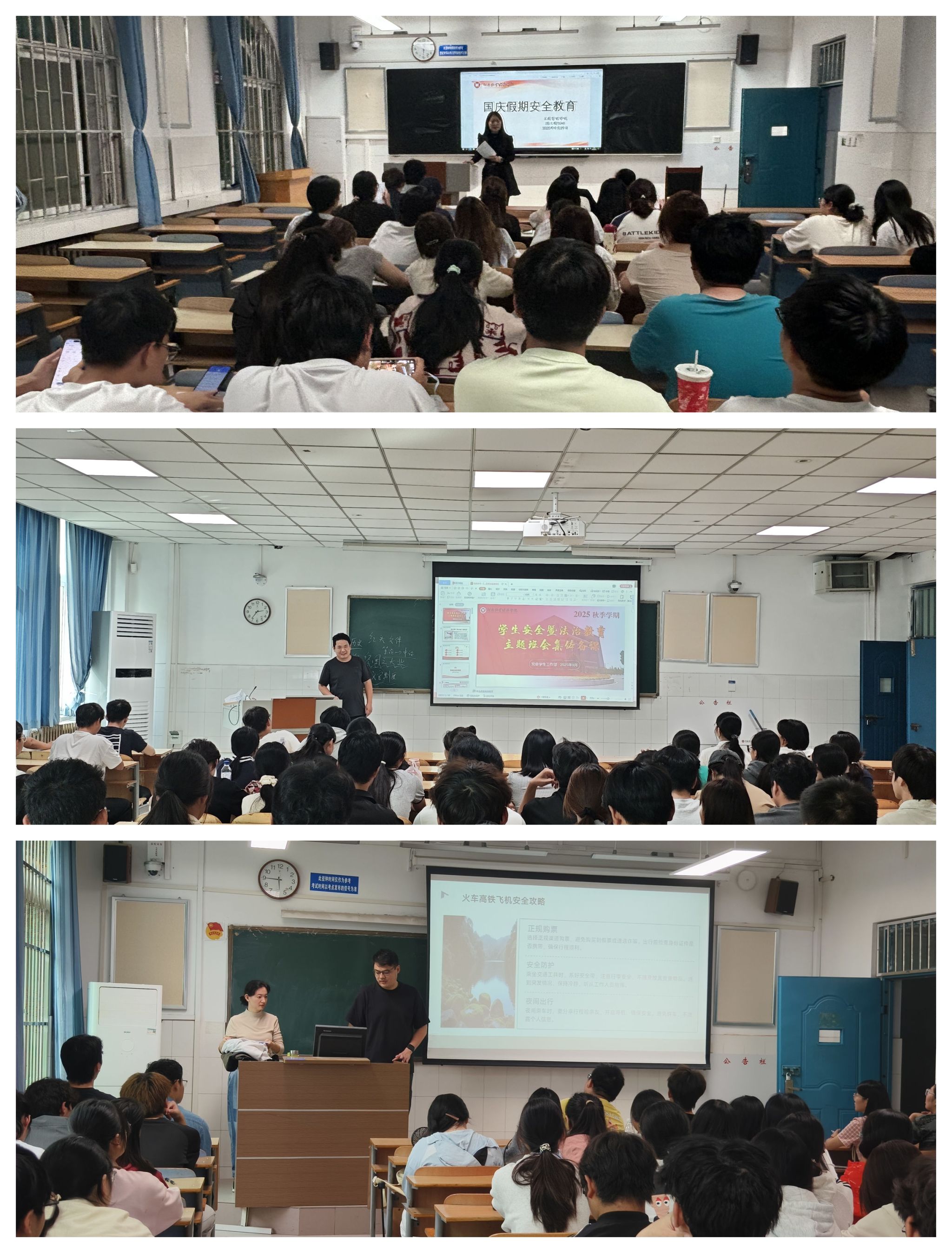 2025年国庆节假期安全教育主题班会紧扣国家安全战略,在组织学生签订安全承诺书和假期去向登记表的同时,将安全教育提升至“培养担当民族复兴大任时代新人”的政治高度:强化政治引领:结合党的二十大关于“推进国家安全体系和能力现代化”部署,剖析国际局势复杂变化下高校安全工作的新使命,引导学生树立“国家安全一切为了人民、一切依靠人民”的理念。深化责任担当:通过“中国航天安全管控”“一带一路海外利益保护”等案例,阐释新时代青年在科技安全、海外利益安全等领域的责任,激励学生将个人理想融入国家发展大局。