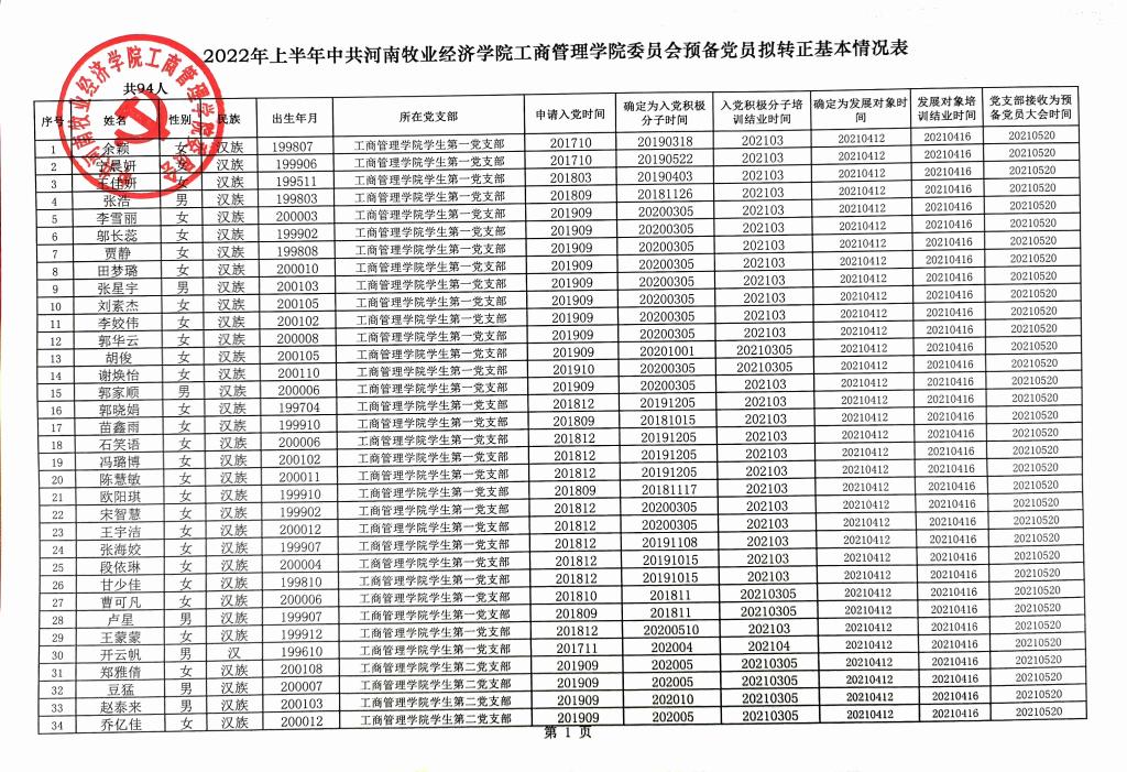 2022年上半年ok138cn太阳集团529党委预备党员拟转正公示