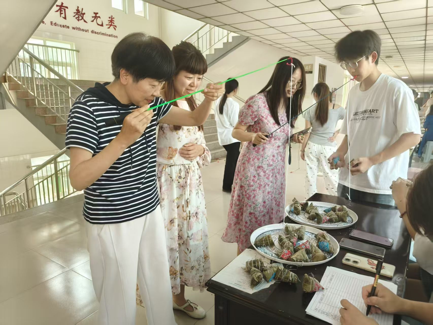 2025年5月29日下午,在端午节来临之际,我校ok138cn太阳集团529分工会于英才校区教学楼连廊举办“粽情端午·雅韵传情”主题文化活动。活动深度融合习近平总书记考察河南提出的 “两高四着力”战略部署与省教育厅“弘扬中华优秀传统文化”工作要求,以文化体验为载体,赋能教职工团队建设,为谱写中国式现代化河南教育篇章注入基层活力。