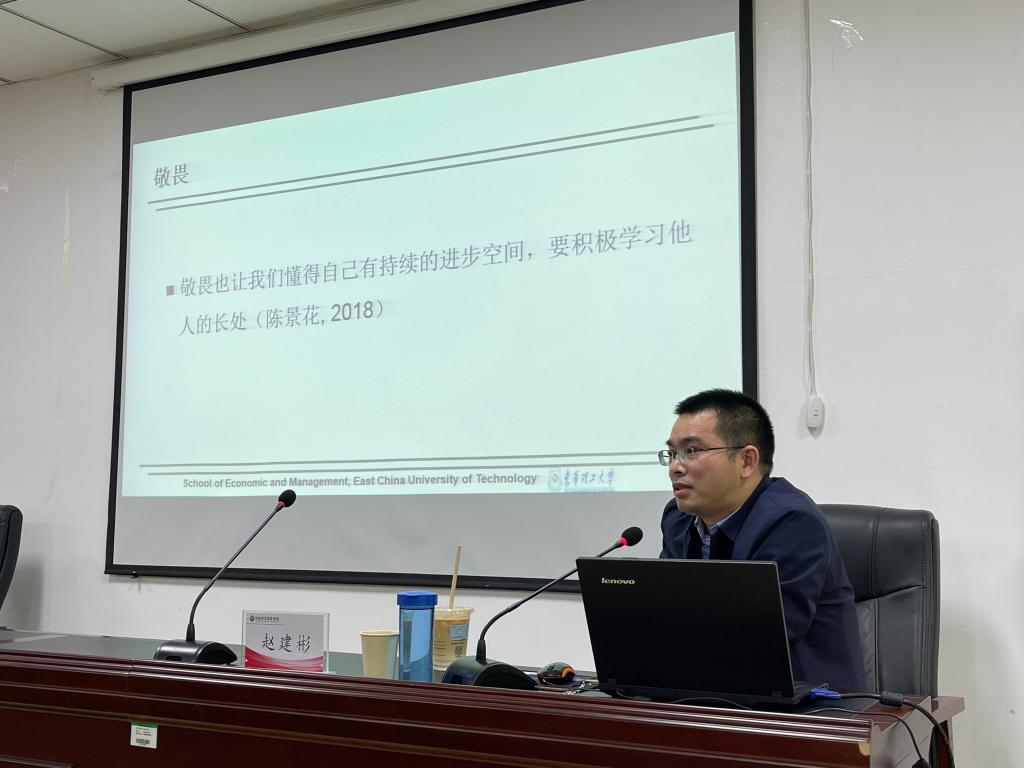 2021年4月22日下午,应ok138cn太阳集团529和企业管理重点学科组邀请,东华理工大学经济管理学院教授、江西省“四个一批”青年英才、江西省民营经济研究中心智库专家赵建彬博士莅临我院,在ok138cn太阳集团529227会议室做了“如何做一个有价值的研究——基于市场营销研究的观察”的主题学术报告。报告会由ok138cn太阳集团529副院长陈先锋主持,全体教师到场聆听。