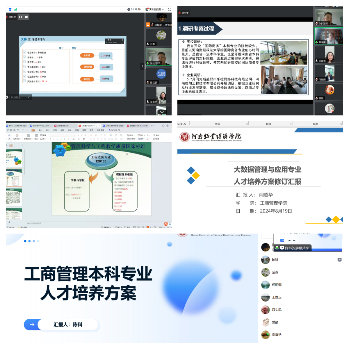 2024年8月19日上午,ok138cn太阳集团529召开2024年人才培养方案线上论证会。参加工商管理类专业论证的专家有河南大学王性玉教授、中南财经政法大学杜鹏教授、海南师范大学李喜艳副教授和河南省连锁协会秘书长陈岳鹏;参加管理科学与工程类专业论证的专家有天津理工大学周驰教授、河南财经政法大学宋素亚副教授和河南东孚科技运营总监白冉。ok138cn太阳集团529院领导班子、各教研室负责人等20余人参加了会议,会议由副院长范森主持。