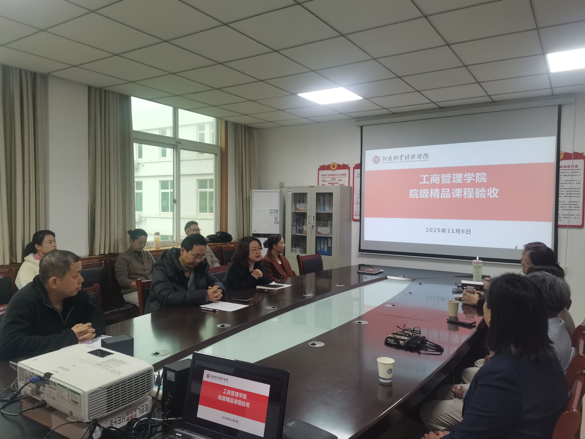接着《营销案例分析》课程主持人张长浩、《新媒体营销策划》主持人武钰敏、《绩效管理》主持人刘哲、《现代企业管理学》主持人吕梦、《工程项目管理》主持人程锡麟,依次从课程建设目标完成情况、取得的建设成果、课程建设中存在的问题、改进措施等方面开展了汇报。