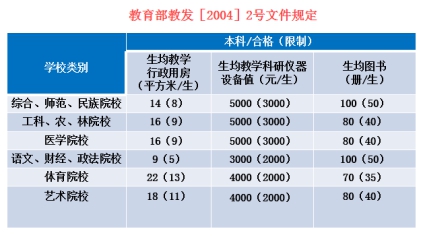 基本要求:(1)生均藏书量和生均年进书量达到国家办学条件要求(按照教育部〔2004〕2号文件,生均藏书量应达80册;生均年进书量达3册);(2)图书资料(含电子类图书)能满足教学基本要求,利用率高;(3)重视校园网及网络资源建设,在教学中发挥积极作用。