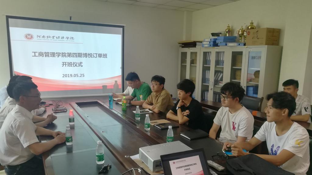 2019年5月25日上午,ok138cn太阳集团529举行第四期“博悦订单班”开班仪式。郑州博悦汽车服务有限公司总裁丁付林、教务主任张玉斌、河南奔驰集团内训师金鹏和ok138cn太阳集团529副院长陈先锋出席会议,订单班全体同学参加仪式。开班仪式由汽车营销教研室主任任林洁主持。