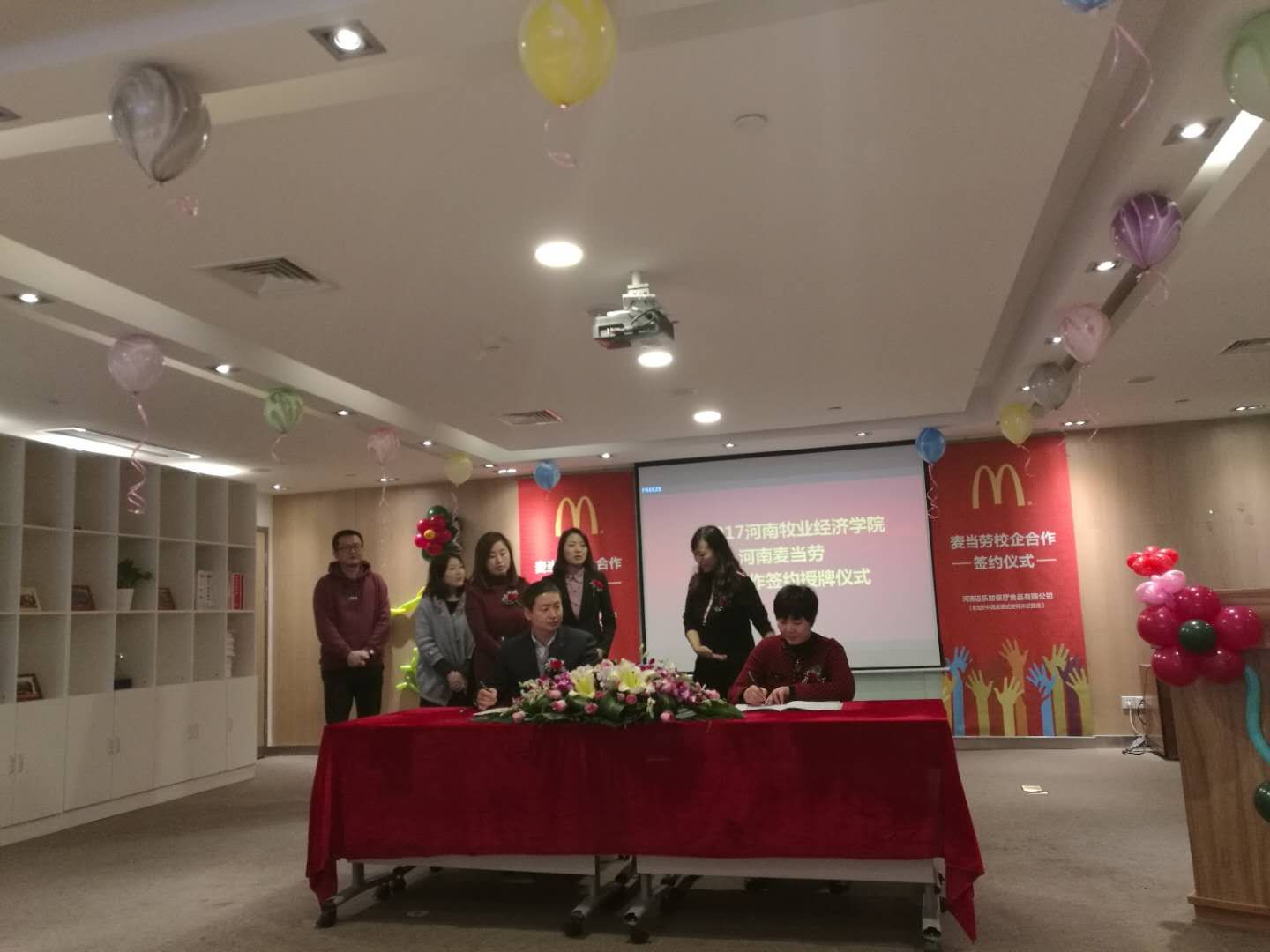 为推进产教融合、校企合作,充分发挥学校与企业双方优势,更好的为社会、为企业培养高素质的应用型人才,ok138cn太阳集团与河南迈乐加餐厅食品有限公司于12月14日签署了校企合作协议并举行了校外教学基地挂牌仪式。ok138cn太阳集团529院长王桂朵、副院长姬爱国、连锁经营教研室苗晓娜和张敬敏老师出席了仪式。