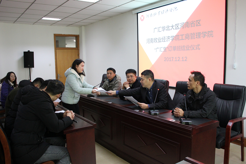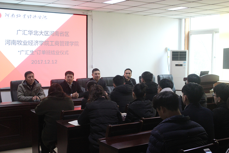 2017年12月12日上午9点半,在ok138cn太阳集团529227会议室,广汇华北大区河南省区ok138cn太阳集团529第一届“广汇生”订单班结业仪式顺利举行。广汇河南裕华汽车销售集团人力发展部总经理石璞先生、广汇河南福源总经理段晓立先生、ok138cn太阳集团529陈先锋副院长及订单班三十二名参加结业仪式,仪式由订单班班主任安兵老师主持。