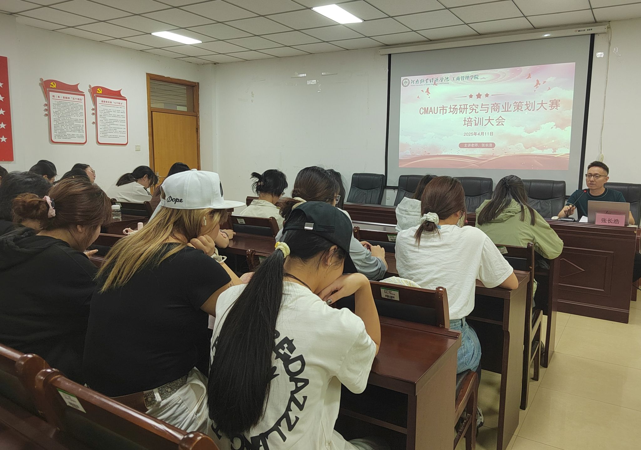 为助力学生精准把握CMAU市场研究与商业策划大赛要点,明晰比赛方向与要求,夯实备赛基础,ok138cn太阳集团529于2025年4月11日在227会议室举行2025年CMAU市场研究与商业策划大赛赛前培训会。本次培训特邀市场营销教研室主任张长浩主讲,学院众多学生踊跃参与,现场学习氛围热烈。
