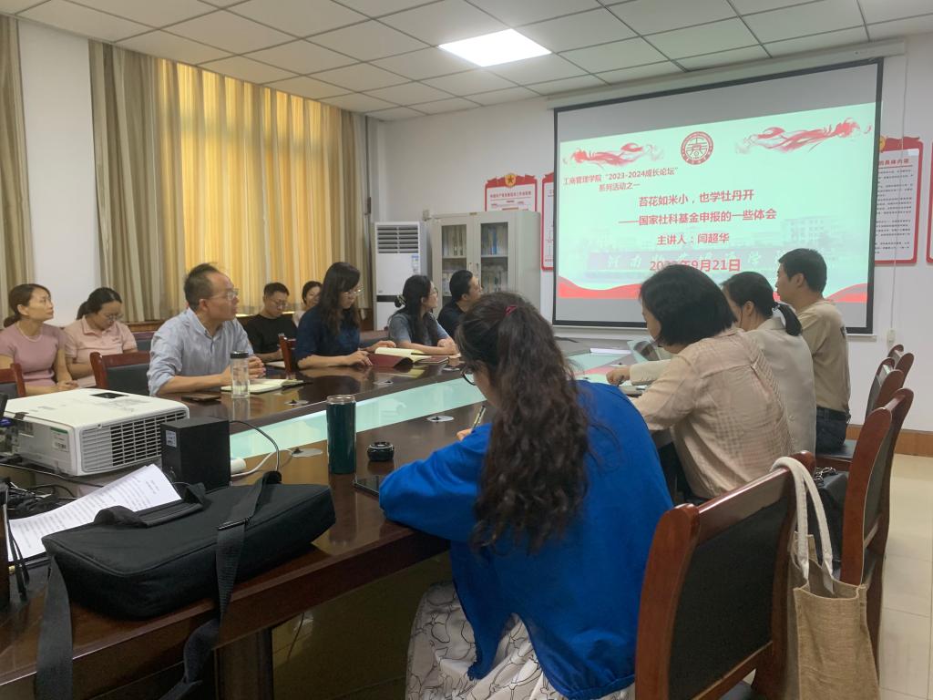 会上,闫超华博士以“苔花如米小,也学牡丹开——国家社科基金申报的一些体会”为题与大家分享了自己国家社科基金申报成功的心得体会。