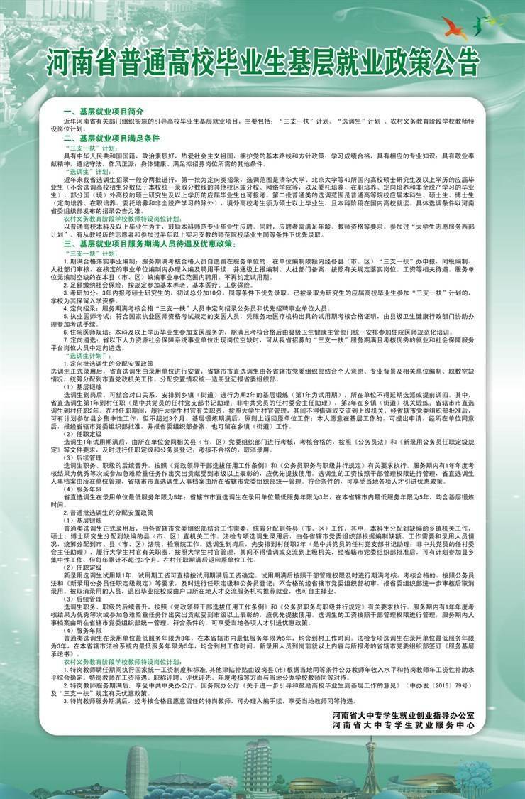 河南省高校毕业生基层就业政策