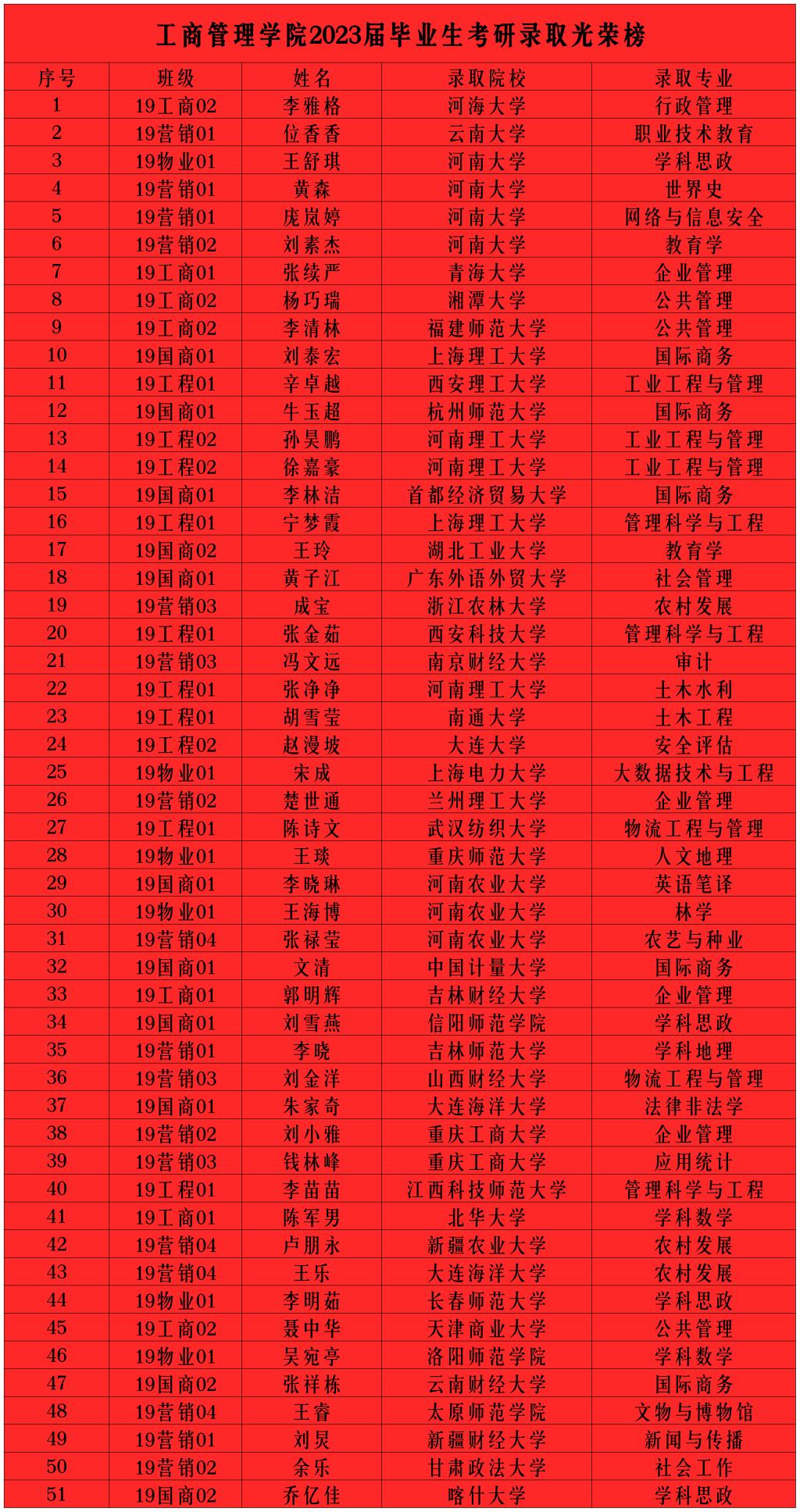 喜报:ok138cn太阳集团5292023届毕业生考研录取光荣榜